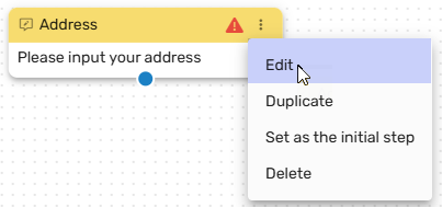 In most cases, you will first edit the Address Step before duplicating or determining its place in the flow. Click Edit, and the Edit Menu will open. The Edit Menu will open on the right side.