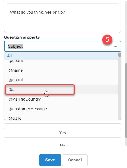 Question Property: - The Question Property will often remain as the default, as changing the Question Property can change the type of data collection Step it is. However, the Question Property can option can also be used to select any number of custom question properties.