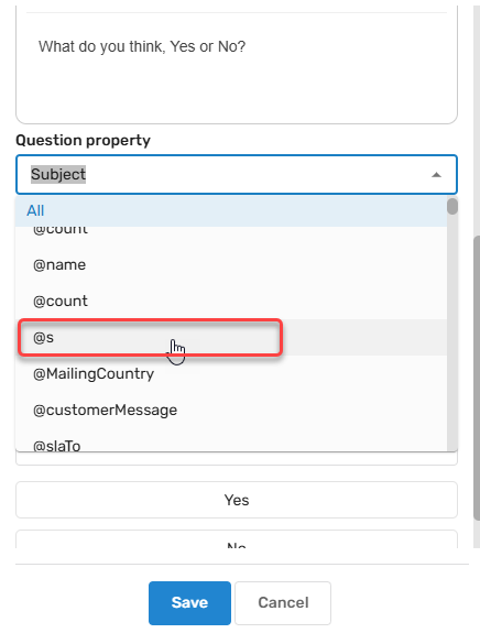 The Yes/No Question parameter is a simple data collection parameter used to record a choice, such as yes or no, true or false, or simply a choice between products and departments within the chatbot flow. It does not have to be a binary choice. This option can be used to create multiple-choice queries. The selected response then becomes available for later Steps within the same flow.