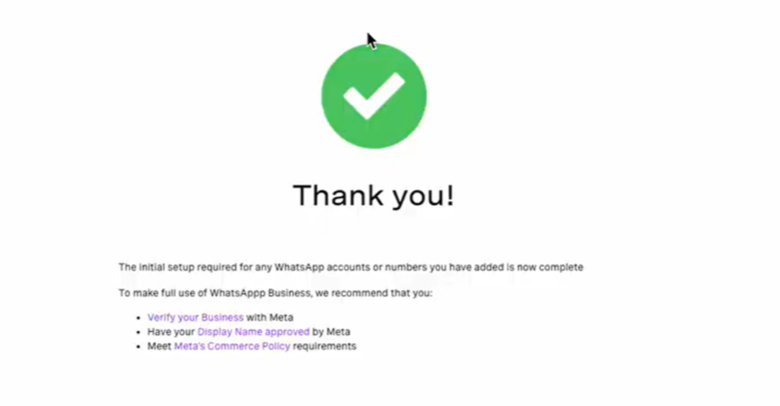 Do I need an existing Meta or WhatsApp Business Account before starting? No. You can create a new WhatsApp Business Account as part of this flow. All you need is a Facebook account with admin access to a Meta Business Portfolio.