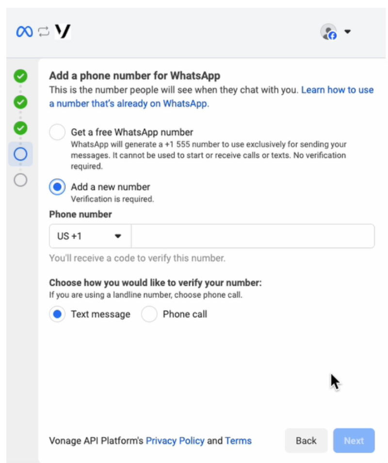 Add a new WhatsApp number using the embedded signup flow.
