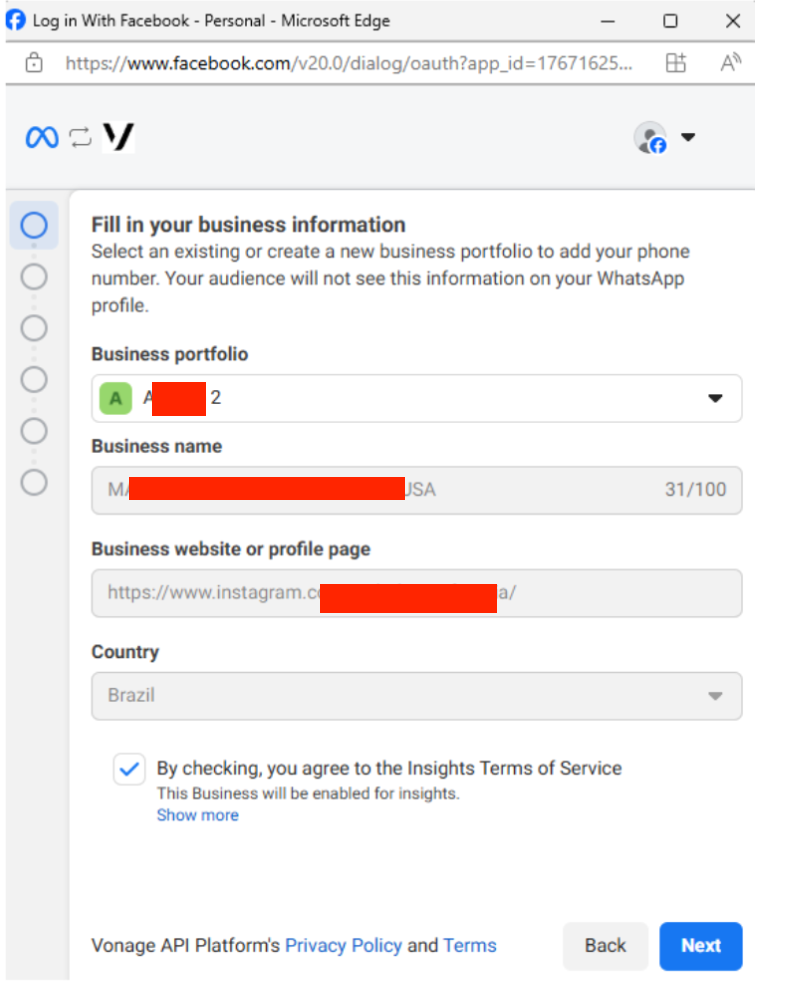 Choose the Meta Business Portfolio you want to associate your new WhatsApp Business Account with.