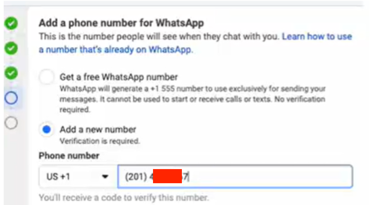 - Your own existing number - a number you own and have access to. It does not need to have any prior connection to Meta or WhatsApp.