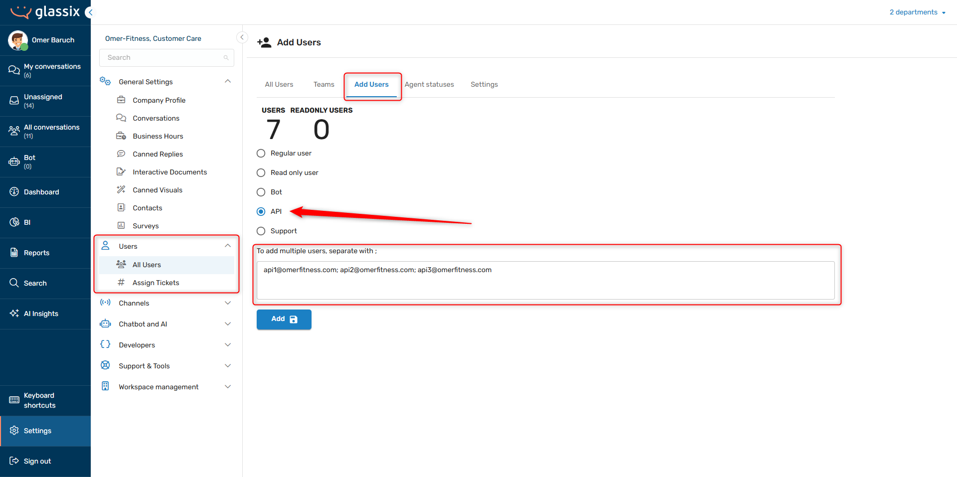 Log in to your Glassix workspace as a Department or Workspace admin