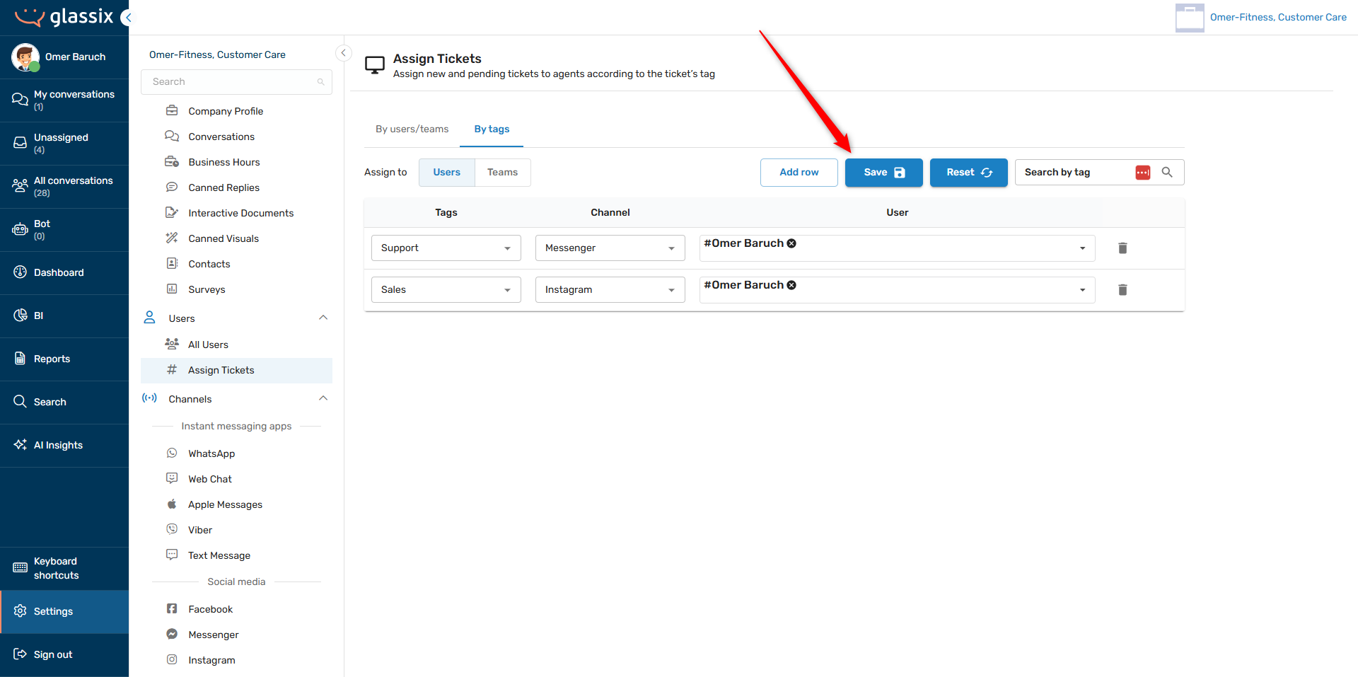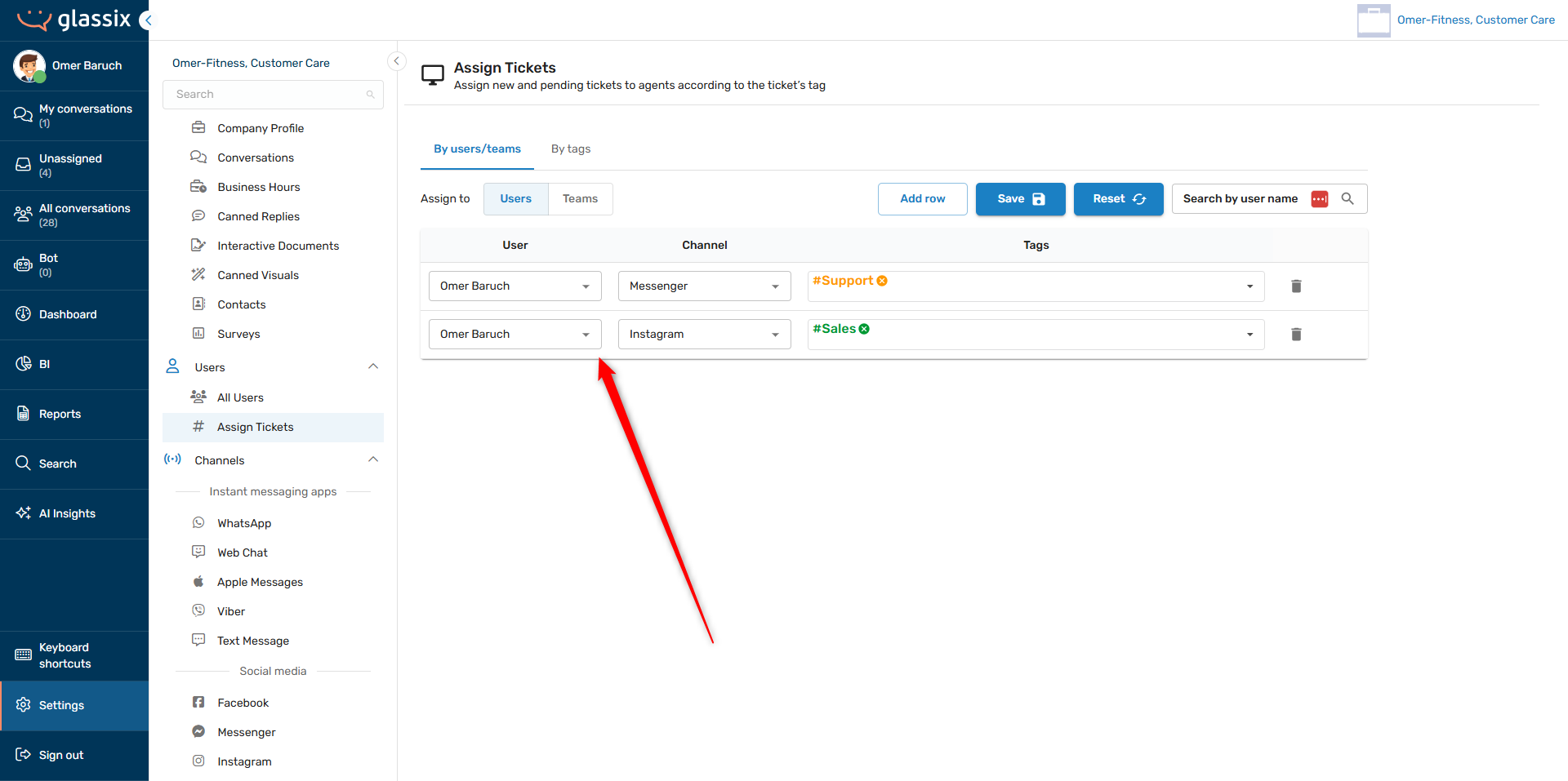 Important:Assigning tickets by tags overrides any channel permissions. Tickets will be assigned to agents even if they are not authorized for the communication channel in which the conversation was received.