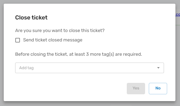 When this option is enabled, agents will be prompted to add additional tags when attempting to close a ticket with less than the required number:
